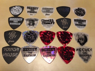 そうそう、ちょいと機材やら何やら片付けてたら、またしてもレアなピック発掘!先日5/9に発売したらおかげ様であっという間に完売しちゃったので、明日また10枚セットで限定発売しちゃいます。売り切れたらおしまいです。今度こそ本当にラストチャンスかも…勿論リニューアルしたNew HEESEYモデルのピックも引き続き好評発売中!! お楽しみに!!