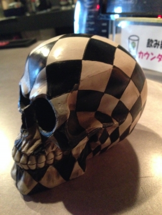 ブラックホールのバーカウンターにあったドクロが、オレの衣装と同じテイスト。アンプの上に飾りたい気分だったぞ…
