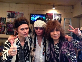 楽屋にはベガーズのメンバーをはじめ大勢のゲストのみなさんで ごった返してて和気あいあい。 オレと三国さん(Kb.)とYUKI(B.)と松尾宗仁氏(G.)が連なった楽屋の席は、 それぞれが久々がゆえの大談笑。