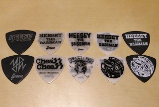そうそう、先月の名阪ソロツアーの時から、リニューアルしたHEESEYモデルのピックを販売開始して好評発売中なんだけど、機材類を整理してたら1つ前のデザインや今までのいろんなデザインのピックを発掘(笑)