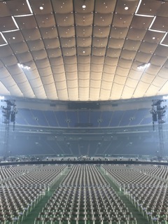 リハーサルの合間にメインステージのセンターから撮ったドームの客席。