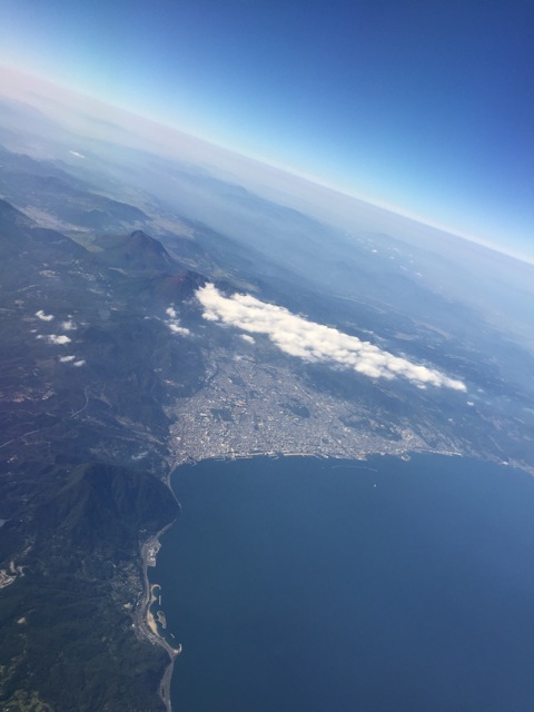 九州上陸前の窓の外。
