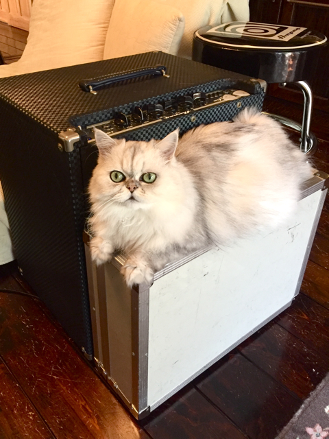 いつもはこの部屋に置いてない機材を発見すると、「ちゃんとわかるのよ!」とでも言いたげに、すぐに乗っかるモプ(笑)