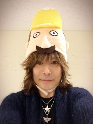 終演後。カブリものを用意されたら、そりゃカブるっしょ!新潟のゆるキャラ・レルヒさんをカブるヒロセさん。