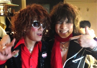 2014.12.27.@Zher the ZOO backstage 一昨年の『ぶっちゃけカバーナイト』で『追憶の銀幕ズ』っていう THE YELLOW MONKEYのカバーバンドをやってくれたマティーと“本人”の2ショット。 4/17も必要ならHEESEYバッジを貸すので、思いっきり盛り上げてくださいまし! よろしくね!