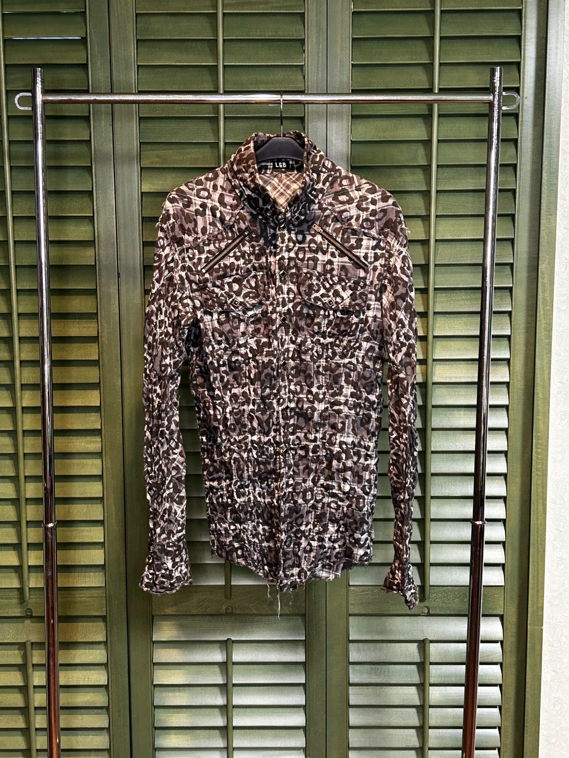 【6】ヒョウ柄白黒チェックシャツ 価格:¥30,000-