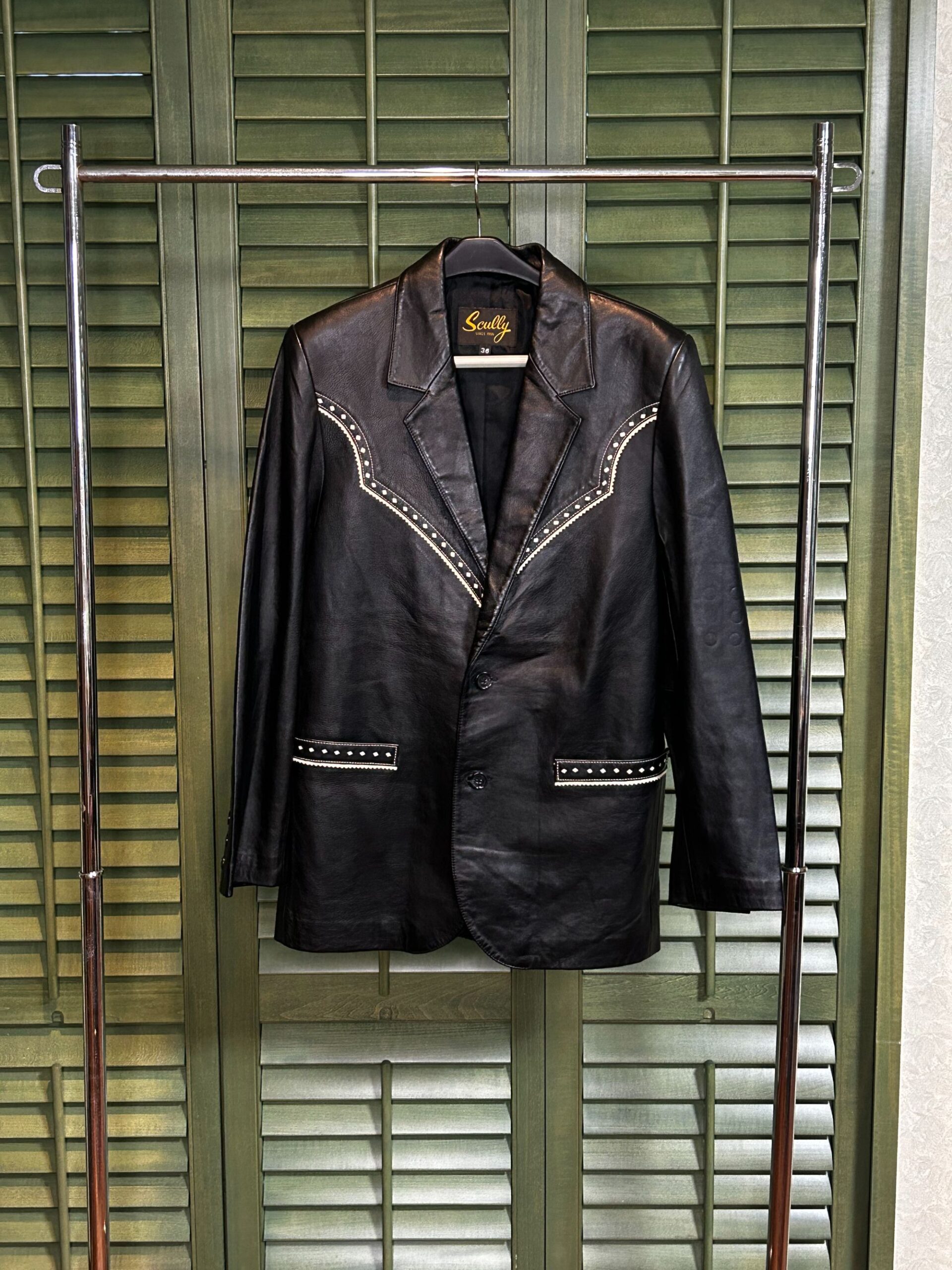 【6】黒レザー白ワンポイントジャケット 価格:¥20,000-