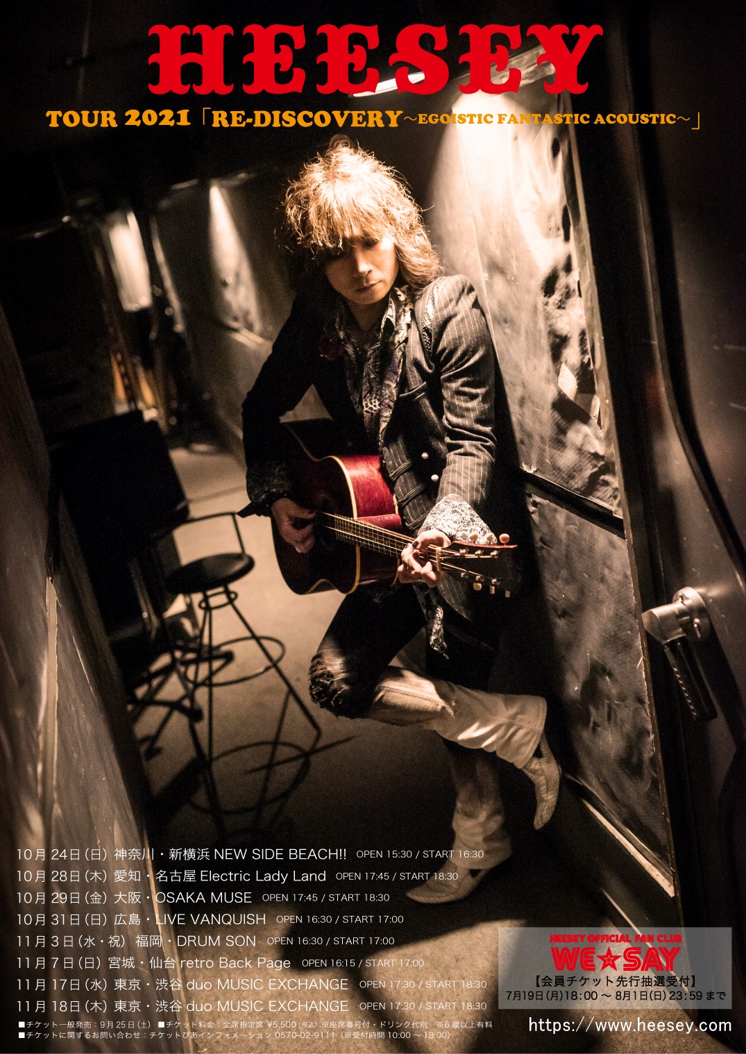 廣瀬 “HEESEY” 洋一アコースティックライブツアーTOUR 2021『RE-DISCOVERY〜EGOISTIC FANTASTIC ACOUSTIC〜』の開催が決定しました。更にWE☆SAY会員チケットの先行抽選受付を開始いたしました。